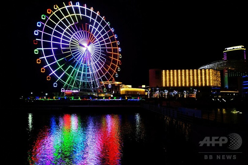青島西海岸新区の海上嘉年華にある観覧車のイルミネーションに明かりが灯るころ、観覧車のゴンドラ内にはさまざまな楽器を持った人々がこっそりと乗り込んだ。スロバキアから来訪中のしたコシツェ・フィルハーモニー管弦楽団(Kosice State Philharmonic)と北京八中(Beijing No.8 High School)金帆(Jinfan)交響楽団などの若手音楽家が集結し、観覧車オーケストラの旅に出た。(c)CNS/JCM/AFPBB News