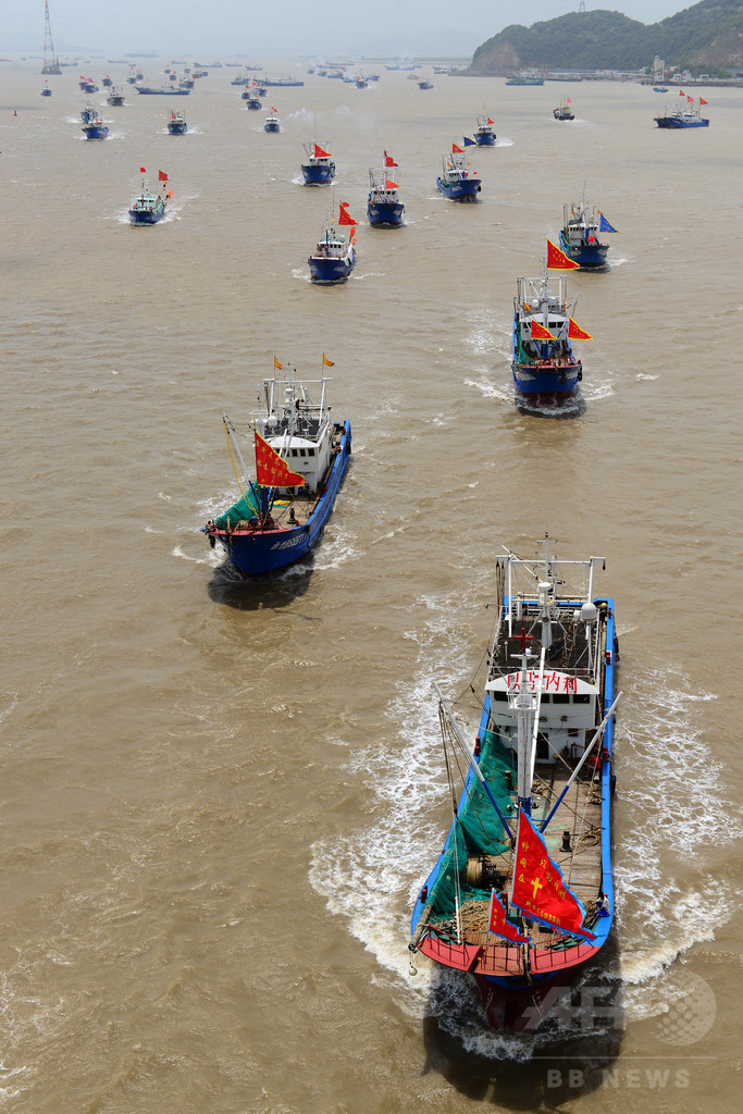 【8月4日 CNS】漁港から勢いよく飛び出した漁船が、沖合の漁場へ向かう。1日午前零時、3か月の休漁期間が終わりを告げ、中国・浙江省(Zhejiang)舟山市(Zhoushan)沈家門(Shenjiamen)漁港から漁船計3575隻が港を出た。舟山市のエビ類底曳き網漁、壺・カゴ漁や刺し網漁など5種類の漁船と運搬船、で、間もなく新鮮な海の幸が家庭の食卓に並ぶはずだ。(c)CNS/JCM/AFPBB News