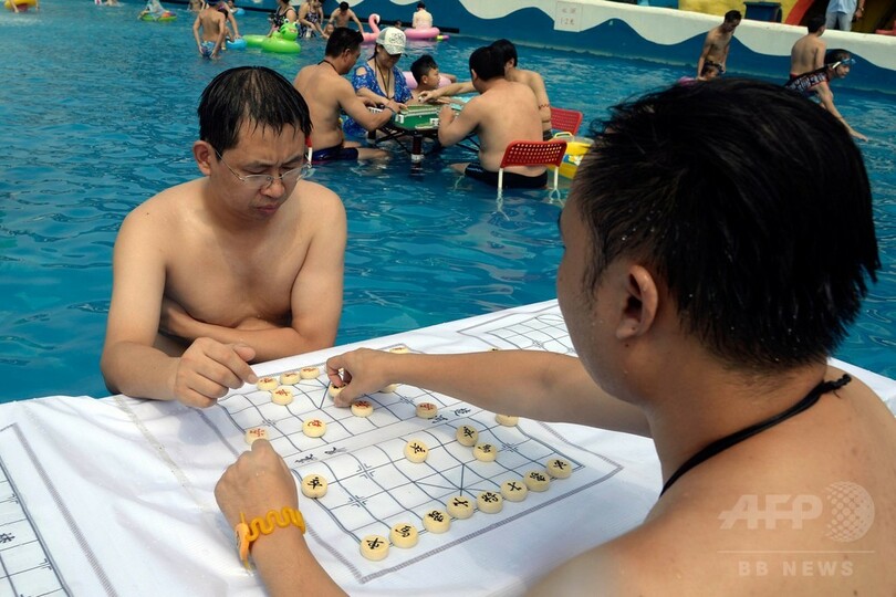 もうプールでやるしかない! 暑さ逃れてマージャンや将棋 中国