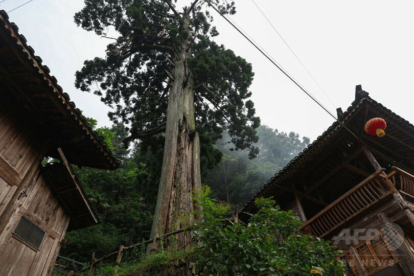 タイワンスギは村の平安と幸福を先祖代々から加護し、地元の人たちからも神樹として崇められている。如何なる人が如何なる理由であろうと、村のタイワンスギを伐採、破壊してはならないと古くから伝承されている。(c)CNS/JCM/AFPBB News
