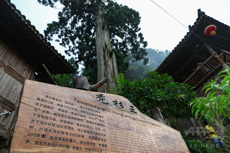 タイワンスギは村の平安と幸福を先祖代々から加護し、地元の人たちからも神樹として崇められている。如何なる人が如何なる理由であろうと、村のタイワンスギを伐採、破壊してはならないと古くから伝承されている。(c)CNS/JCM/AFPBB News