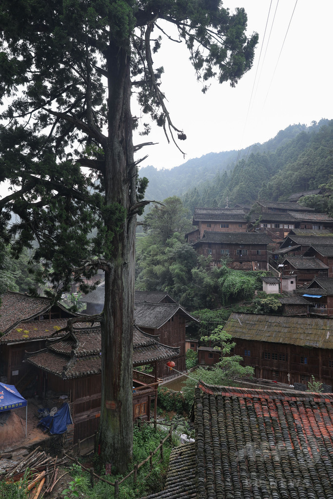 村の入り口にそびえ立つ「タイワンスギ(Taiwania、禿杉)王」。同村には3500本近いタイワンスギが群生しており、樹齢千年を超えるものも200本余りある。同村は、タイワンスギが群生する面積が最も広く、保存状態も最も整っていることから、「中国タイワンスギの郷」と称されている。