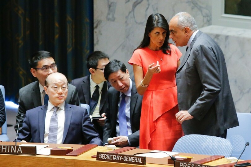 ニッキー・ヘイリー(Nikki Haley)米国連大使は、北朝鮮が弾道ミサイル実験を実施したことにより同国に対する制裁は厳しさを高め「まったく新しい段階」に突入したと述べ、安保理は今回の制裁決議で北朝鮮の金正恩(キム・ジョンウン、Kim Jong-Un)朝鮮労働党委員長に「警告を与えた」と付け加えた。