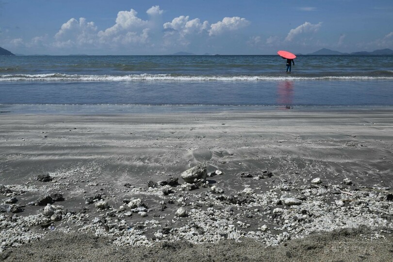 【8月7日 AFP】(写真追加)香港(Hong Kong)で6日、中国の海域で発生した船舶衝突事故によりパーム油が流出したことを受け、10か所のビーチが閉鎖された。
