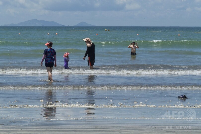 【8月7日 AFP】(写真追加)香港(Hong Kong)で6日、中国の海域で発生した船舶衝突事故によりパーム油が流出したことを受け、10か所のビーチが閉鎖された。