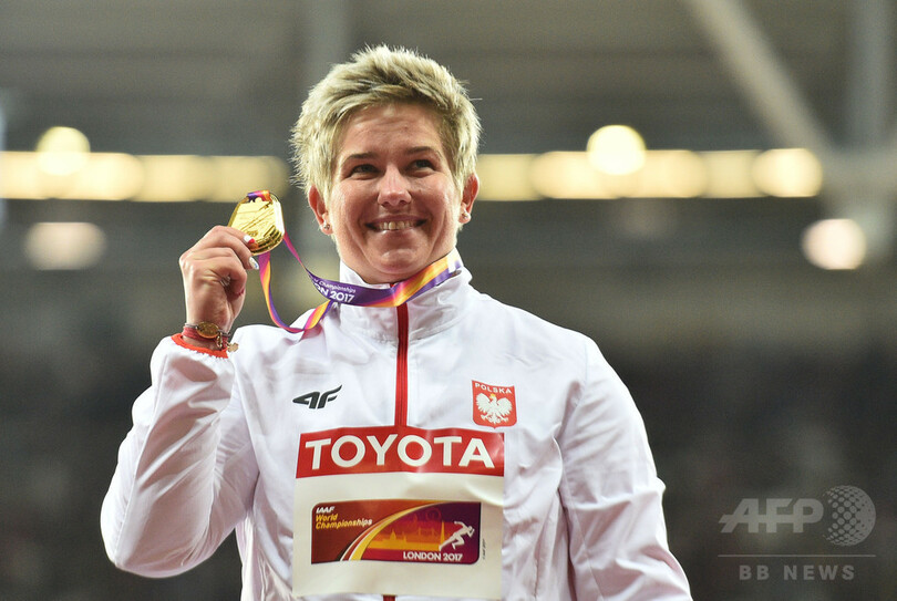 女子三段跳びは、ベネズエラのジュリマール・ロハス(Yulimar Rojas)、女子ハンマー投げ決勝は、ポーランドのアニタ・ウロダルチュク(Anita Wlodarczyk)が表彰台の頂点に立っている。(c)AFP/Luke PHILLIPS/Pirate IRWIN