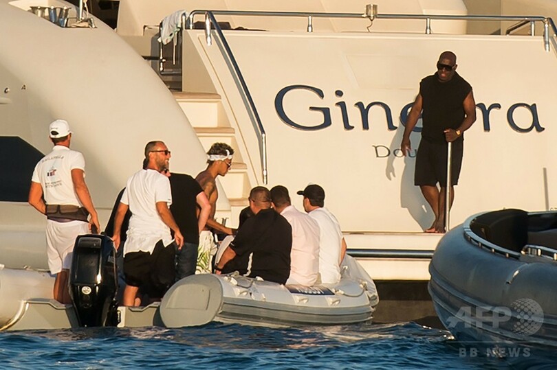 ビーチで5時間を過ごしたネイマールはその後、友人7人やボディーガードと共に高級ヨットの中へ姿を消した。今週中とされる国際移籍証明書の発行を待っているネイマールは、5日に行われたPSGの今季開幕戦をスタンドから観戦。試合はPSGが2-0でアミアン(Amiens SC)に勝利している。(c)AFP