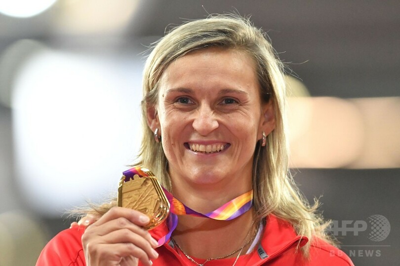 女子やり投げでは、世界記録保持者のバルボラ・スポタコバ(Barbora Spotakova、チェコ)が世界陸上で2個目の金メダルを獲得。五輪でも2度表彰台の頂点に立っている36歳は、66メートル76を投げた。(c)AFP/Pirate IRWIN