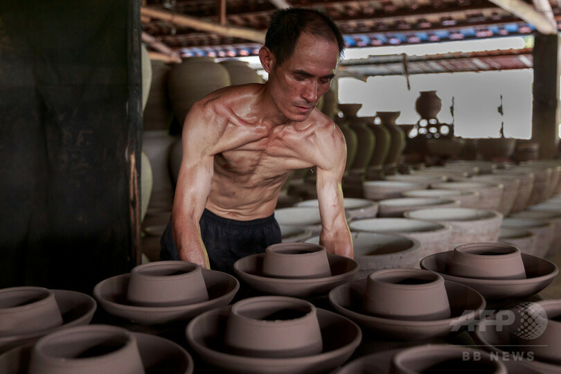 【8月17日 CNS】中国・湖南省(Hunan)懐化市(Huaihua)辰溪県(Chenxi)にある一軒の工房。人の手による陶磁器製品の制作技術が、今も守り続けられている。陶磁器製品は我々の日常生活に欠かせないものだが、科学技術の発展に伴い、伝統的な人の手による作陶は徐々に姿を消しつつある。(c)CNS/JCM/AFPBB News