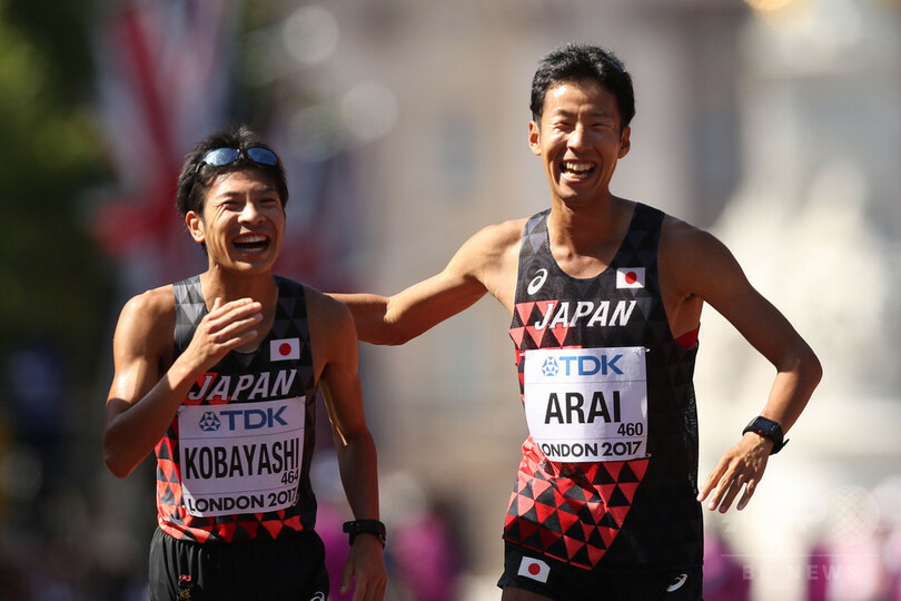 【8月14日 AFP】第16回世界陸上ロンドン大会(16th IAAF World Championships in Athletics London)は13日、各種目の決勝が行われ、男子50キロメートル競歩で荒井広宙(Hirooki Arai)が銀メダル、小林快(Kai Kobayashi)が銅メダルを獲得した。