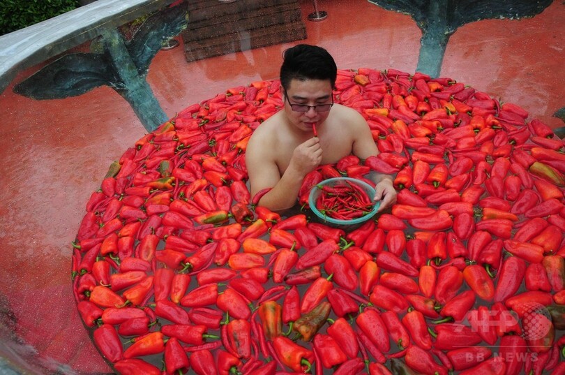 ニュース ライフ 中も外も辛い! 唐辛子早食い選手権 中国 2017年8月15日 11:16 発信地:寧郷/中国 [ 中国・台湾 中国 ] このニュースをシェア ‹ › ❮ 4/4 ❯ 中国・湖南省寧郷で開かれた唐辛子の大食い選手権で、唐辛子の風呂に漬かりながら唐辛子を食べる参加者(2017年8月12日撮影)。(c)AFP 画像作成中 ! 【8月15日 AFP】中国・湖南(Hunan)省の景勝地、寧郷(Ningxiang)で12日、唐辛子の早食い選手権が開かれ、参加者らが唐辛子の風呂に漬かりながら必死に唐辛子を口に運んだ。この大会は辛い料理で有名な湖南省を観光客にアピールするために開かれた。優勝者は1分間に15個の唐辛子を食べた。(c)AFP ライフ 一覧へ> メディア・報道関係・法人の方向け 写真・動画 購入のお問合せ>