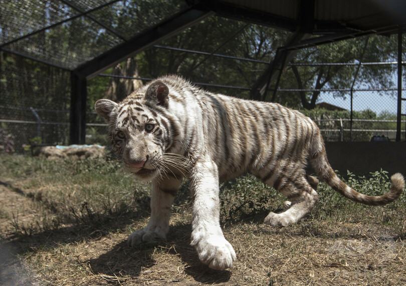 メキシコ北部ヌエボレオン(Nuevo Leon)州モンテレイ(Monterrey)のラ・パストーラ動物園(La Pastora Zoo)で生まれたトラのジニャックは、生後間もなく母親から引き離されることを余儀なくされた。園長のエドガー・アコスタ(Edgar Acosta)氏は、母親が「初めての出産で育児経験がなく、親としての資質が備わっていなかった」としている。