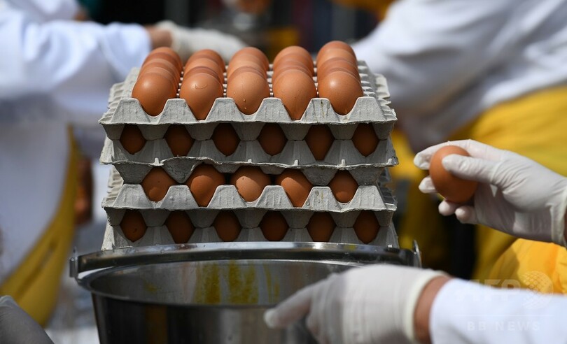 【8月16日 AFP】卵の殺虫剤汚染問題の渦中にあるベルギーで15日、巨大なオムレツを作るイベントが開かれ、雨天の中、1000人以上がオムレツを食べに集まった。