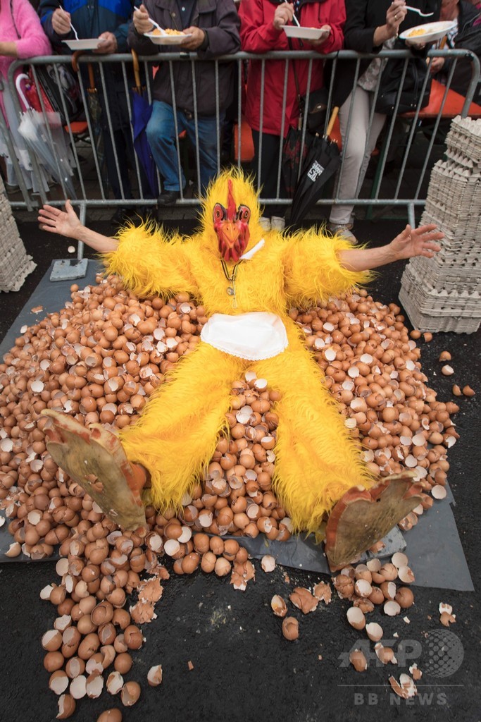 【8月16日 AFP】卵の殺虫剤汚染問題の渦中にあるベルギーで15日、巨大なオムレツを作るイベントが開かれ、雨天の中、1000人以上がオムレツを食べに集まった。