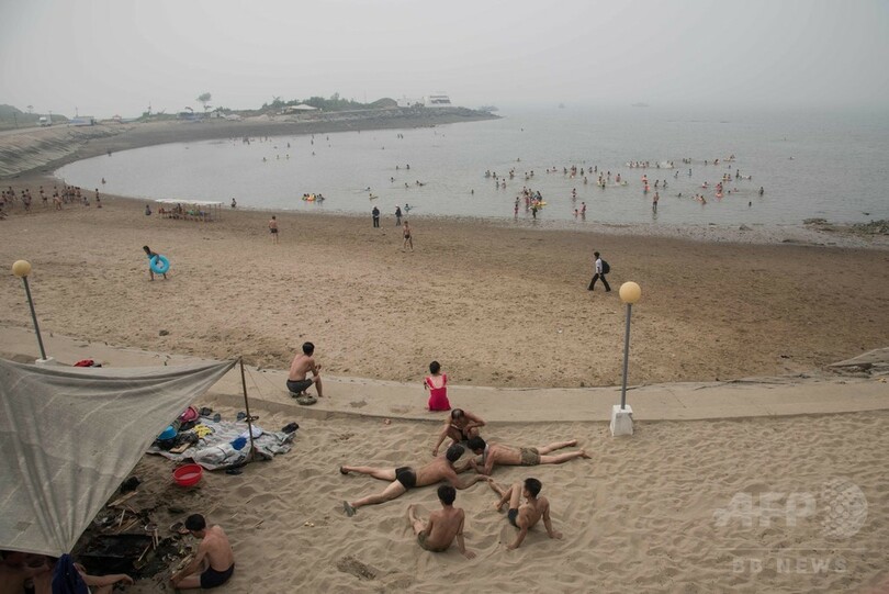 【8月27日 AFP】北朝鮮・南浦(Nampho)の西海閘門(West Sea Barrage)ビーチでは、子どもたちは浮き輪を着けて浅瀬で遊び、大人たちはテントの下で日差しを避けながら、朝鮮半島の焼酎「ソジュ」を飲み、焼いたアサリや豚肉を食べて楽しむ。