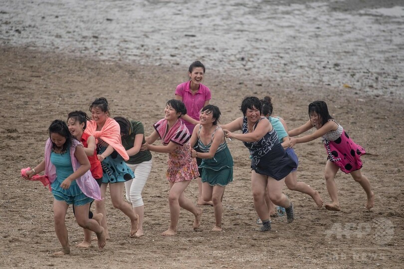 【8月27日 AFP】北朝鮮・南浦(Nampho)の西海閘門(West Sea Barrage)ビーチでは、子どもたちは浮き輪を着けて浅瀬で遊び、大人たちはテントの下で日差しを避けながら、朝鮮半島の焼酎「ソジュ」を飲み、焼いたアサリや豚肉を食べて楽しむ。