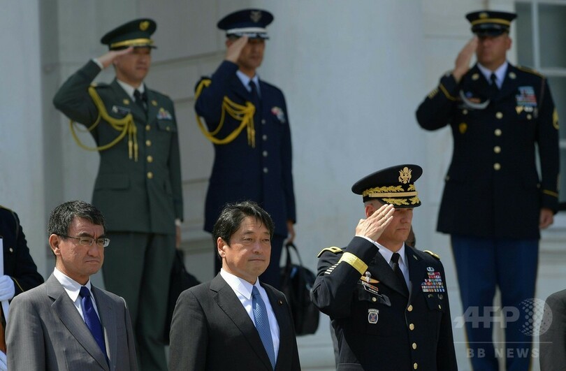 【8月17日 AFP】河野太郎(Taro Kono)外相と小野寺五典(Itsunori Onodera)防衛相は16日、日米の外務・防衛担当閣僚による日米安全保障協議委員会(2プラス2)の会合に臨むため、米首都ワシントン(Washington D.C.)入りした。両相は郊外にあるアーリントン国立墓地(Arlington National Cemetery)を訪れ、無名戦士の墓に献花した。(c)AFP