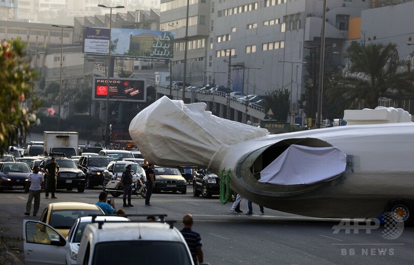 長さ23メートル! 修道士の巨像、幹線道路使って輸送 レバノン