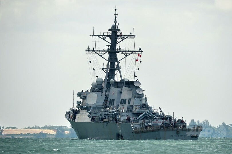 【8月21日 AFP】(更新、写真追加)米海軍によると、ミサイル駆逐艦「ジョン・S・マケイン(USS John S. McCain)」が21日、シンガポール東方沖でタンカーと衝突し、損傷した。乗組員10人が行方不明となり、5人が負傷した。現場で捜索・救助活動が行われている。