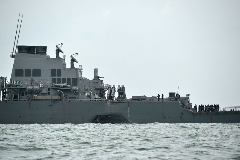 【8月21日 AFP】(更新、写真追加)米海軍によると、ミサイル駆逐艦「ジョン・S・マケイン(USS John S. McCain)」が21日、シンガポール東方沖でタンカーと衝突し、損傷した。乗組員10人が行方不明となり、5人が負傷した。現場で捜索・救助活動が行われている。