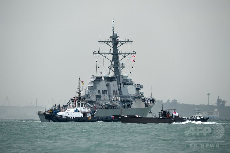 【8月21日 AFP】(更新、写真追加)米海軍によると、ミサイル駆逐艦「ジョン・S・マケイン(USS John S. McCain)」が21日、シンガポール東方沖でタンカーと衝突し、損傷した。乗組員10人が行方不明となり、5人が負傷した。現場で捜索・救助活動が行われている。