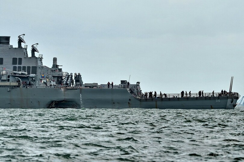 米駆逐艦がタンカーと衝突、乗組員10人不明 シンガポール沖