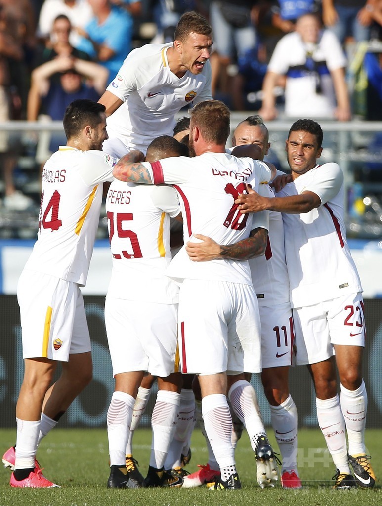 ローマは前半31分、イングランド・プレミアリーグのマンチェスター・シティ(Manchester City)から移籍したアレクサンダル・コラロフ(Aleksandar Kolarov)が直接FKを決め、今季から指揮を執るエウゼビオ・ディ・フランチェスコ(Eusebio Di Francesco)監督は初勝利を挙げた。(c)AFP