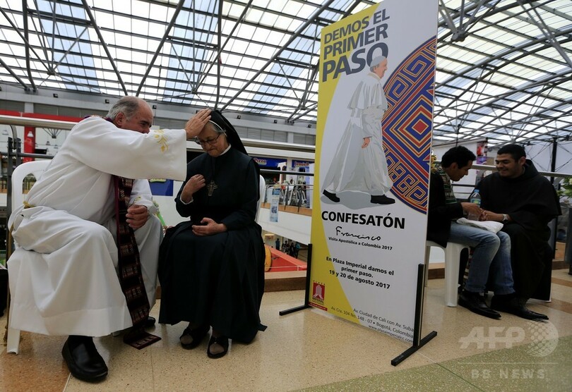 【8月21日 AFP】コロンビアの首都ボゴタ(Bogota)のショッピングモールで20日、現地のカトリック教会による異例の「出張ざんげ」が行われた。ローマ・カトリック教会のフランシスコ(Francis)法王が9月にコロンビアを訪問するのを前に企画されたという。