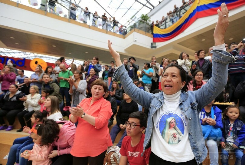 【8月21日 AFP】コロンビアの首都ボゴタ(Bogota)のショッピングモールで20日、現地のカトリック教会による異例の「出張ざんげ」が行われた。ローマ・カトリック教会のフランシスコ(Francis)法王が9月にコロンビアを訪問するのを前に企画されたという。