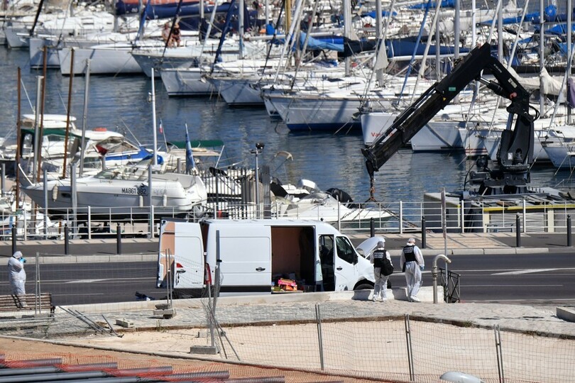 BFMTVの報道によると、目撃者が書き留めていた車のナンバーを使って、警察が容疑者を追跡。同市のビューポート(Vieux-Port)地区で身柄を拘束したという。(c)AFP