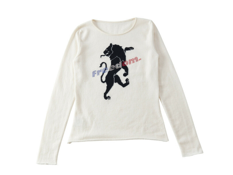「キング・オブ・カシミヤ」と名高い「ルシアン ペラフィネ」がスコットランド製の上質なカシミヤを使用したプルオーバーをメンズ、ウィメンズの両方で限定発売。インターシャの技法でライオンを描き、トリコロールカラーのクリスタルで「Freedom(自由)」のメッセージをあしらったデザイン。