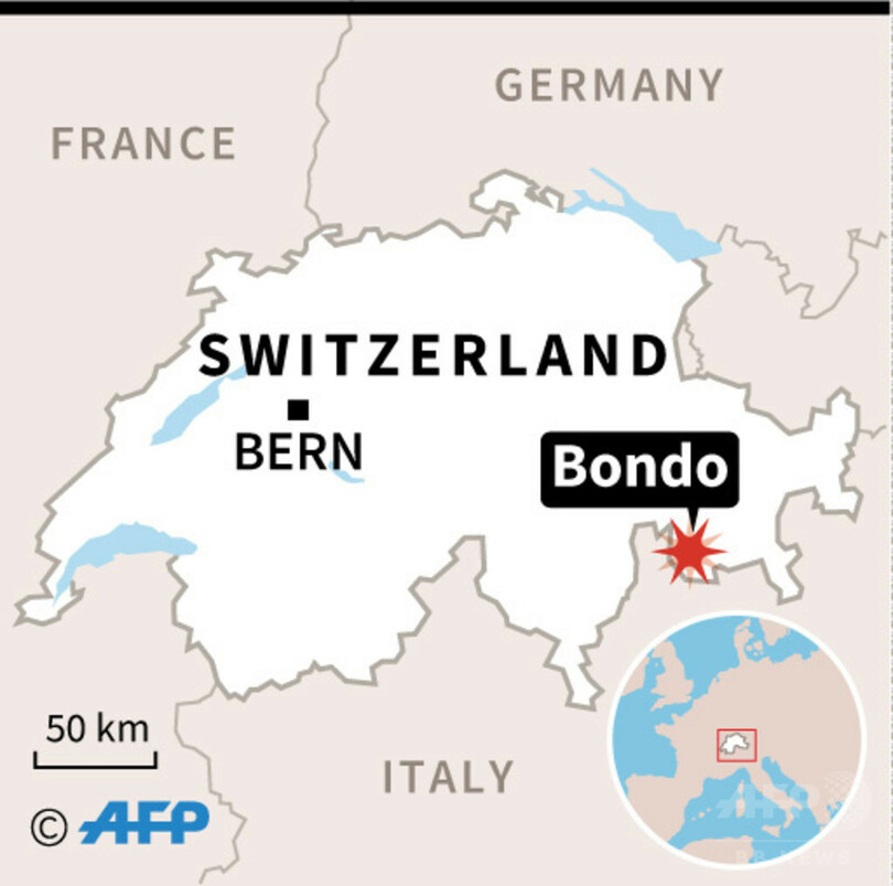 土砂崩れは23日朝に発生。イタリアとの国境付近に位置する村、ボンド(Bondo)に泥や岩などが流れ込み、100人近くが避難を余儀なくされ、一部はヘリコプターで救助された。