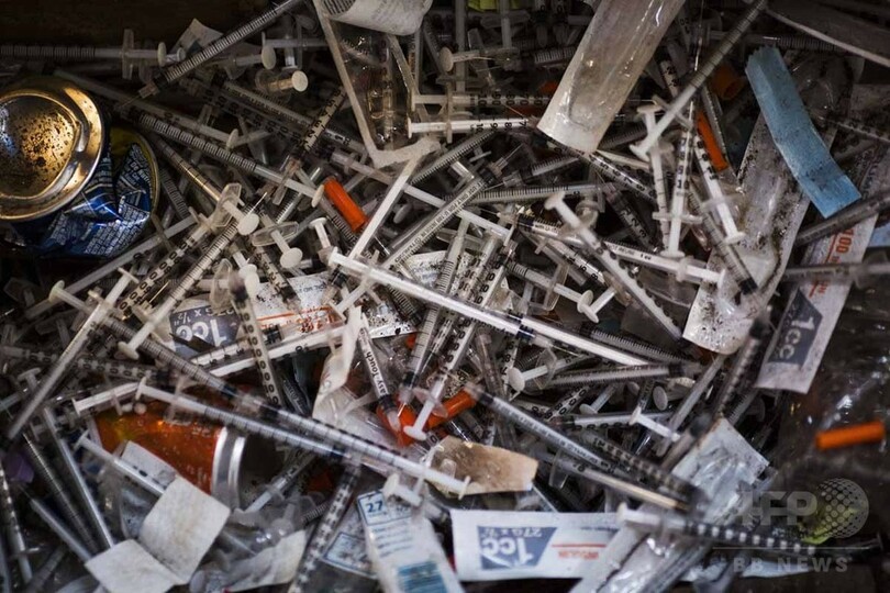 【9月4日 AFP】車を止める場所を見つける間にも、薬物を注射している男性が視界に入ってきた。暗い色のズボンをはき、スエットシャツの袖を半分たくし上げて腕を出したその男性は、ごみが散らかった歩道に立ち、体を揺らしながら腕に注射針を刺していた。