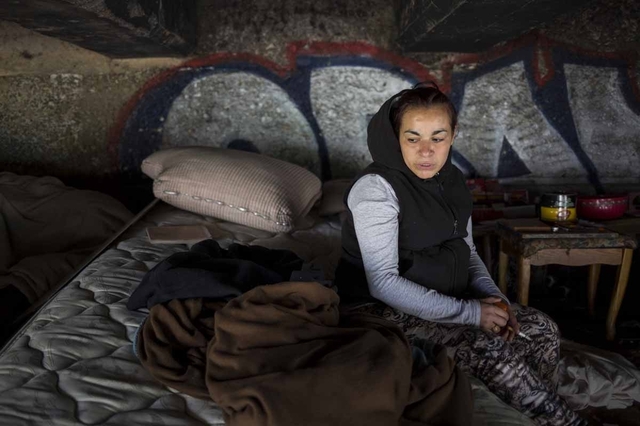 この荒れ果てた光景を背に、ほぼ男性ばかりのグループが間に合わせで作ったテーブルや椅子にかがむようにして、静脈注射薬を自分と仲間たちに打つ準備をしていた。長い路上生活で日焼けした人、ベッドで眠り、洗濯もできる境遇にいるおかげで小ざっぱりして見える人。近くを通ると、不審な目を向けてくる人々もいた。胎児のように体を丸めながらうつろな表情でうろついている人々は、まさに歩くしかばねだった。樹脂が燃える臭いと人の排せつ物の異臭が鼻を突く。