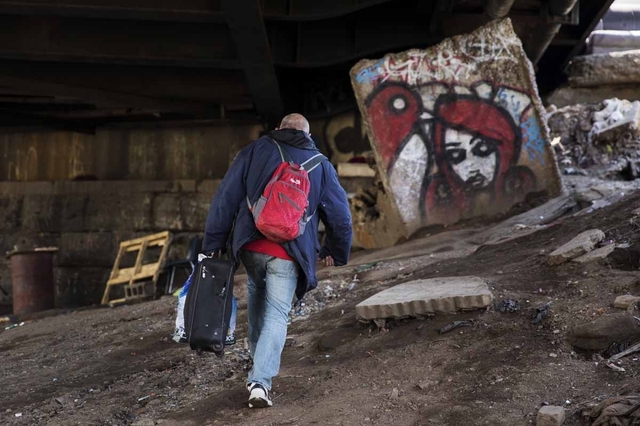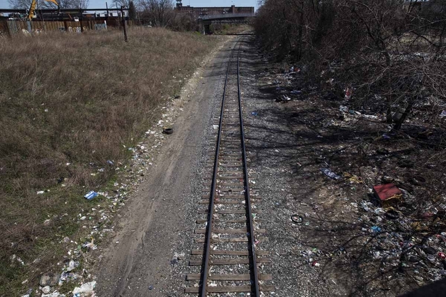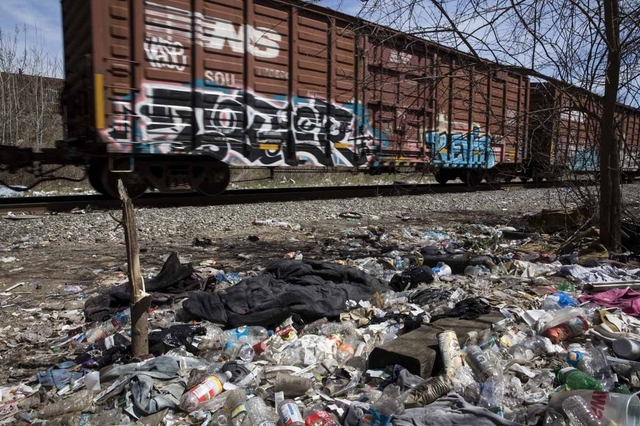 線路とその横の土手は、実際は地元の運送会社の私有地だが、ここを訪れる人々にとっては誰の土地でもない。斜面には、古いソファとテレビ、車のタイヤ、ファストフードのごみが毎日のように捨てられていく。ホームレスの人々や麻薬常用者たちは使えそうなものなら何でも拾って再利用し、陸橋の下で風雨をしのいでいた。