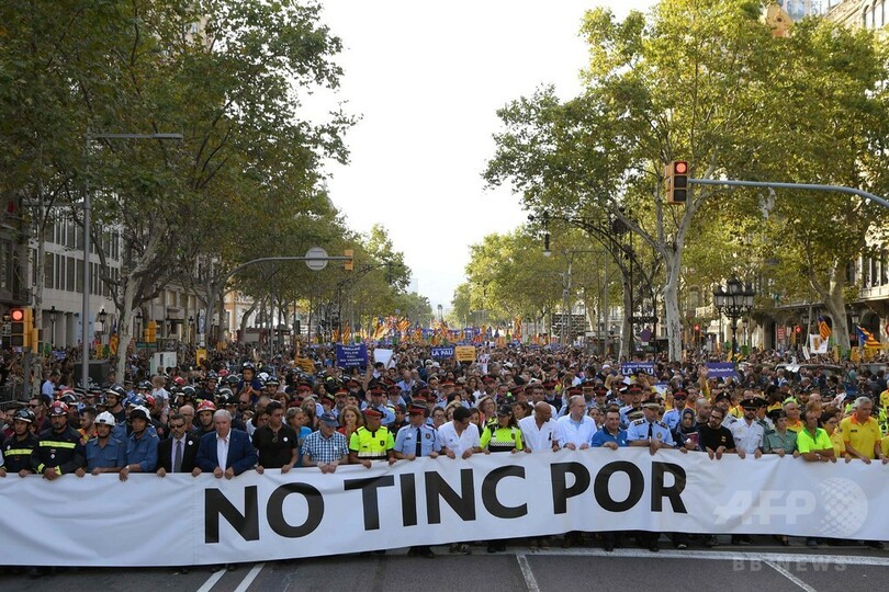 「私は恐れない」車両突入のバルセロナでデモ行進、国王にやじも