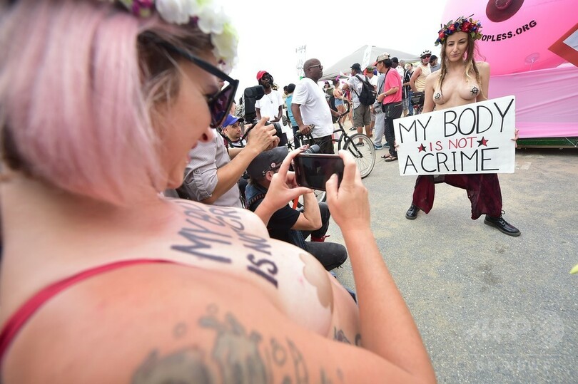 米国で4番目に人口の多いニューヨーク州では、公共の場で女性が上半身裸になることはすでに合法化されている。(c)AFP