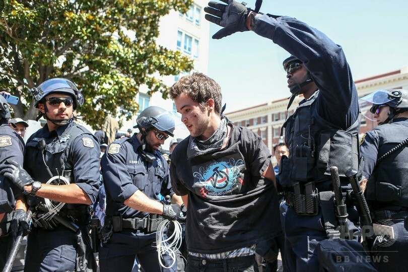 予定された右派の集会に対抗デモ、10人超の身柄拘束 米加州