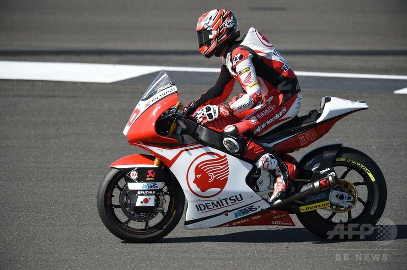 直前に行われたMoto2クラス決勝では、出光ホンダ(IDEMITSU Honda Team Asia)でカレックス(Kalex)のバイクを駆る中上貴晶(Takaaki Nakagami)が優勝を果たし、キャリア2勝目を挙げている。(c)AFP