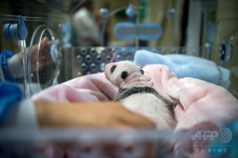 赤ちゃんパンダを優しくだっこ、仏動物園