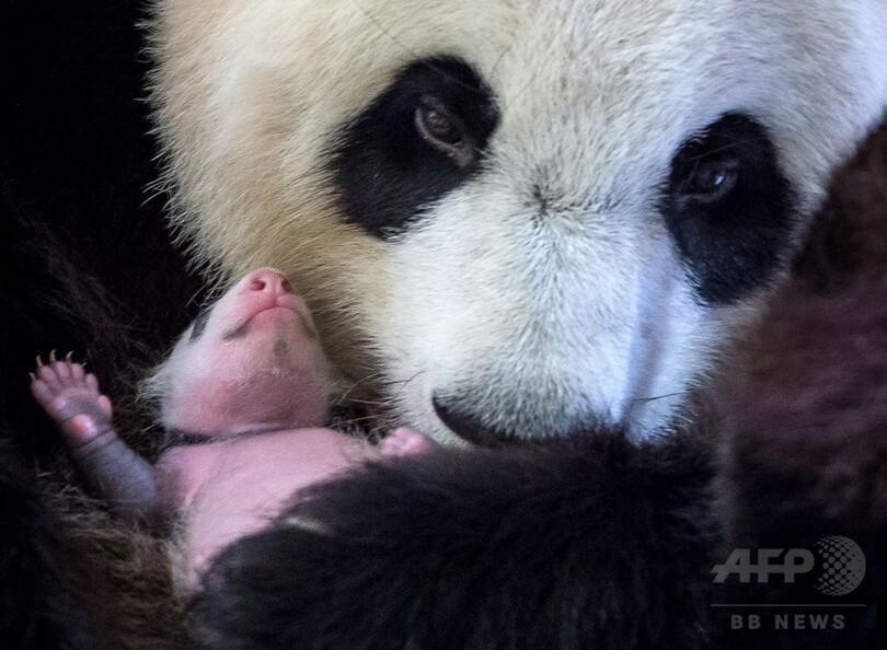 【8月29日 AFP】フランス中部サンテニャンシュルシェール(Saint-Aignan-sur-Cher)にあるボーバル(Beauval)動物園で28日、今月初めに双子を出産したジャイアントパンダの「歓歓(Huan Huan)」が赤ちゃんパンダを抱く様子が見られた。歓歓は4日、双子を出産したが、うち一匹は生後間もなく死んだ。(c)AFP
