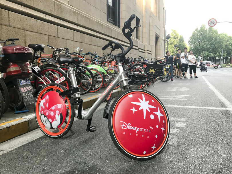 モバイクとディズニーのコラボシェア自転車が上海に登場