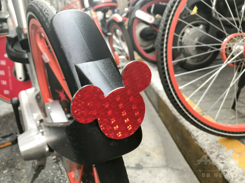 モバイクのユーザーの中心であるは若い世代に人気のミッキーとミニーのペアを、新しい「家族」として招待したという。ミッキーとミニーの自転車はディズニーのデザイナーによるオリジナルで、モバイクの従来型の車両と新型の「Mobike Lite」2種類について特別塗装を実施し、特にミニーの自転車は女性に合わせて設計された。(c)CNS/JCM/AFPBB News
