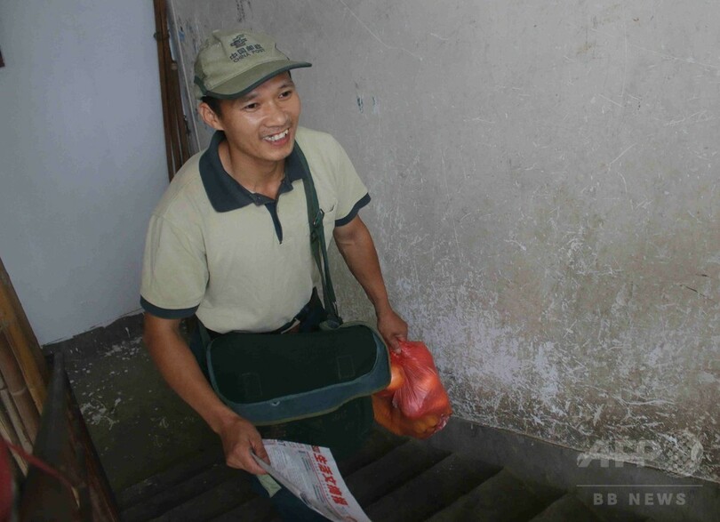 「人のために何かできるということは、どんなに疲れても苦しくても幸福なことです」。数多くいる配達員のうちの1人。袁さんは10年間、この簡単だがとても重みのある言葉を、身をもって証明し続けている。(c)CNS/JCM/AFPBB News