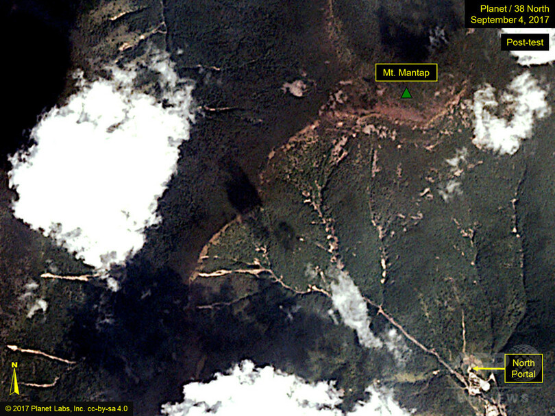 【9月7日 AFP】(写真追加)北朝鮮が3日に行った6回目の核実験の実験場周辺で、複数の土砂崩れが起きているとみられることが分かった。米ジョンズ・ホプキンス大学(Johns Hopkins University)のシンクタンク、米韓研究所(US-Korea Institute)の北朝鮮分析サイト「38ノース(38 North)」が公開した衛星写真により明らかになった。
