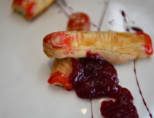 3ヶ月にわたる準備期間では、それぞれの作品ごとに10回以上の試作を重ねた。「例えばケーキに乗ったこの『指』は、当初チョコレートでできていた。でもあまりにリアルすぎるという周りからの意見で、結局パイに変更してなんとか落ち着いた」