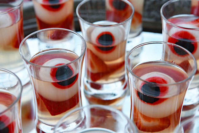 「棺桶ティラミス」「目玉ごろごろスープ」「脳みそレアチーズケーキ」――可愛らしいかぼちゃのお化けがテーブルをにぎわすのかと思いきや、驚くようなタイトルと目を疑うような姿のスイーツが並ぶ。