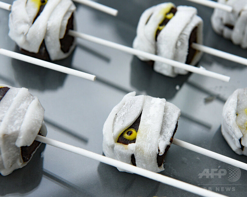 「棺桶ティラミス」「目玉ごろごろスープ」「脳みそレアチーズケーキ」――可愛らしいかぼちゃのお化けがテーブルをにぎわすのかと思いきや、驚くようなタイトルと目を疑うような姿のスイーツが並ぶ。