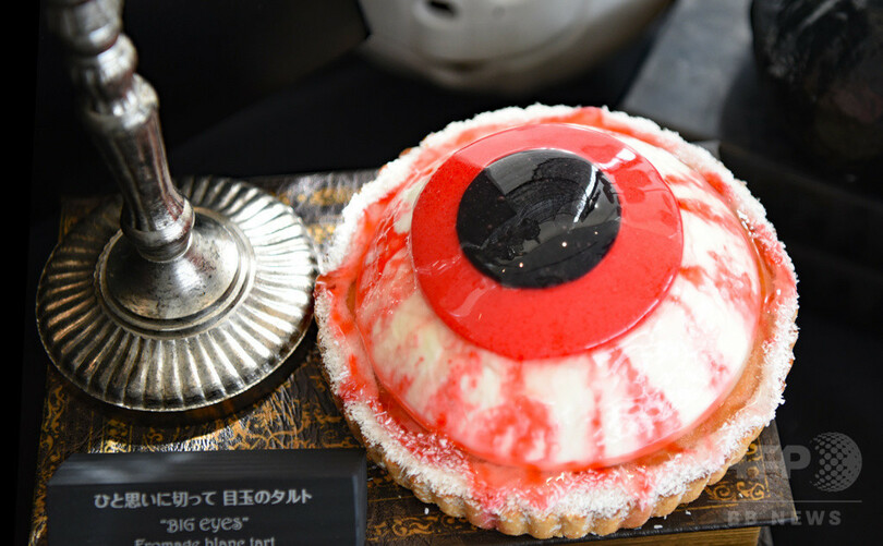 「棺桶ティラミス」「目玉ごろごろスープ」「脳みそレアチーズケーキ」――可愛らしいかぼちゃのお化けがテーブルをにぎわすのかと思いきや、驚くようなタイトルと目を疑うような姿のスイーツが並ぶ。