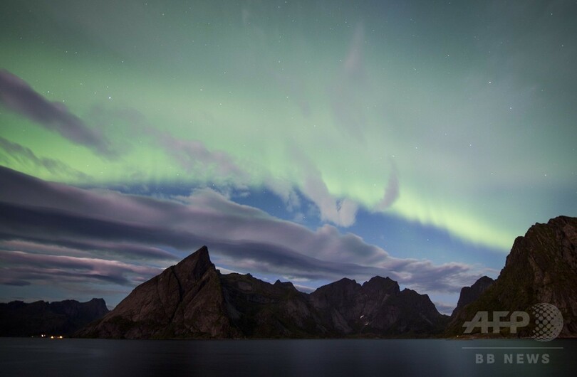 【9月9日 AFP】北極圏(Arctic Circle)にあるノルウェー・ロフォーテン諸島(Lofoten Islands)のレーヌ(Reine)に近いトースフィヨレン(Torsfjorden)で8日、オーロラが空を彩った。(c)AFP
